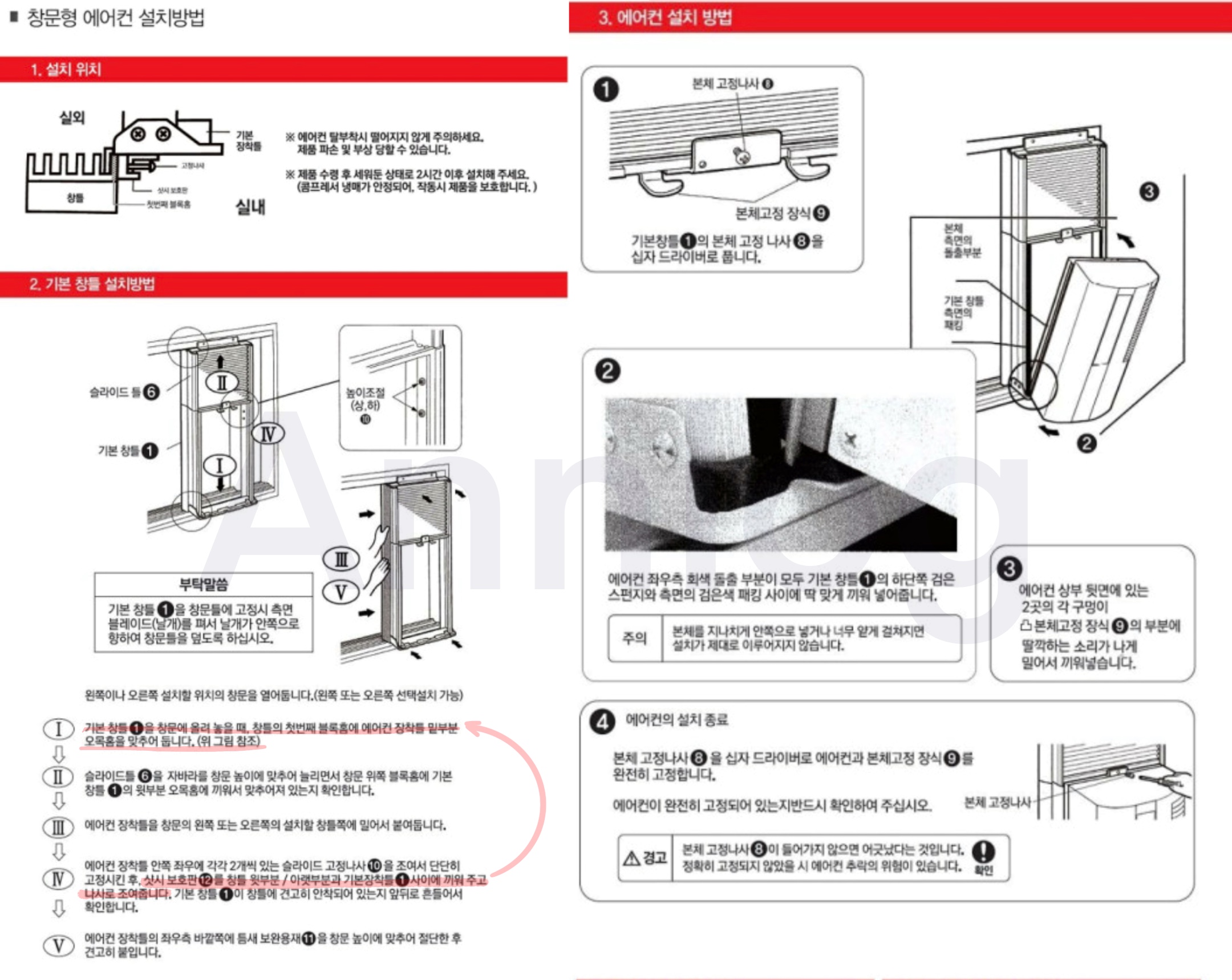 신일 창문형 에어컨(인버터형) 설치 방법 / 나무창틀 설치 주의사항
